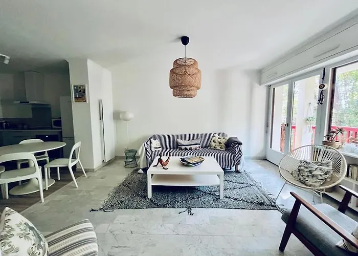 O Appartement Calme Et Familial Au Centre D'Hossegor Soorts-Hossegor está localizado a 2.4 km de Plage de la Graviere e a 25 minutos a pé de Plage Centrale. Os hóspedes podem relaxar e apreciar as vistas para o jardim do terraço deste apartamento.